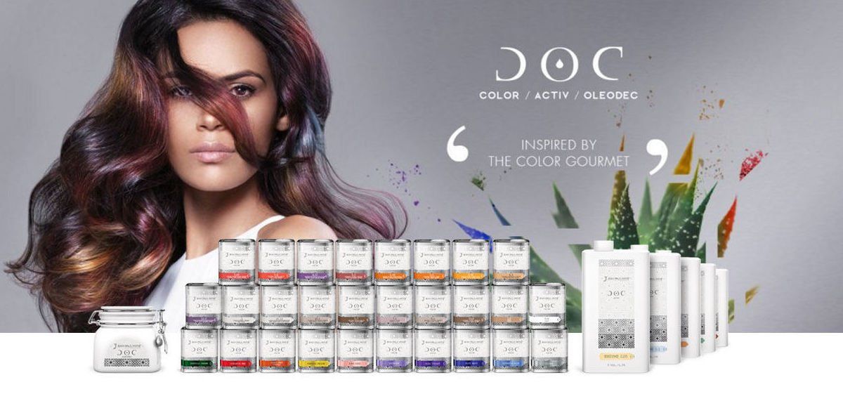 DOC color es el sistema de coloración permanente y demi-permanente con una sola línea de color revolucionaria. Innovador en la sustancia, en el resultado y en el diseño, DOC COLOR entra en sinergia con la especial emulsión activadora DOC ACTIV ENZYME para desarrollar una textura que entre en intimidad con el cabello y que regala el máximo confort a la cliente y para una aplicación sencilla y rápida.